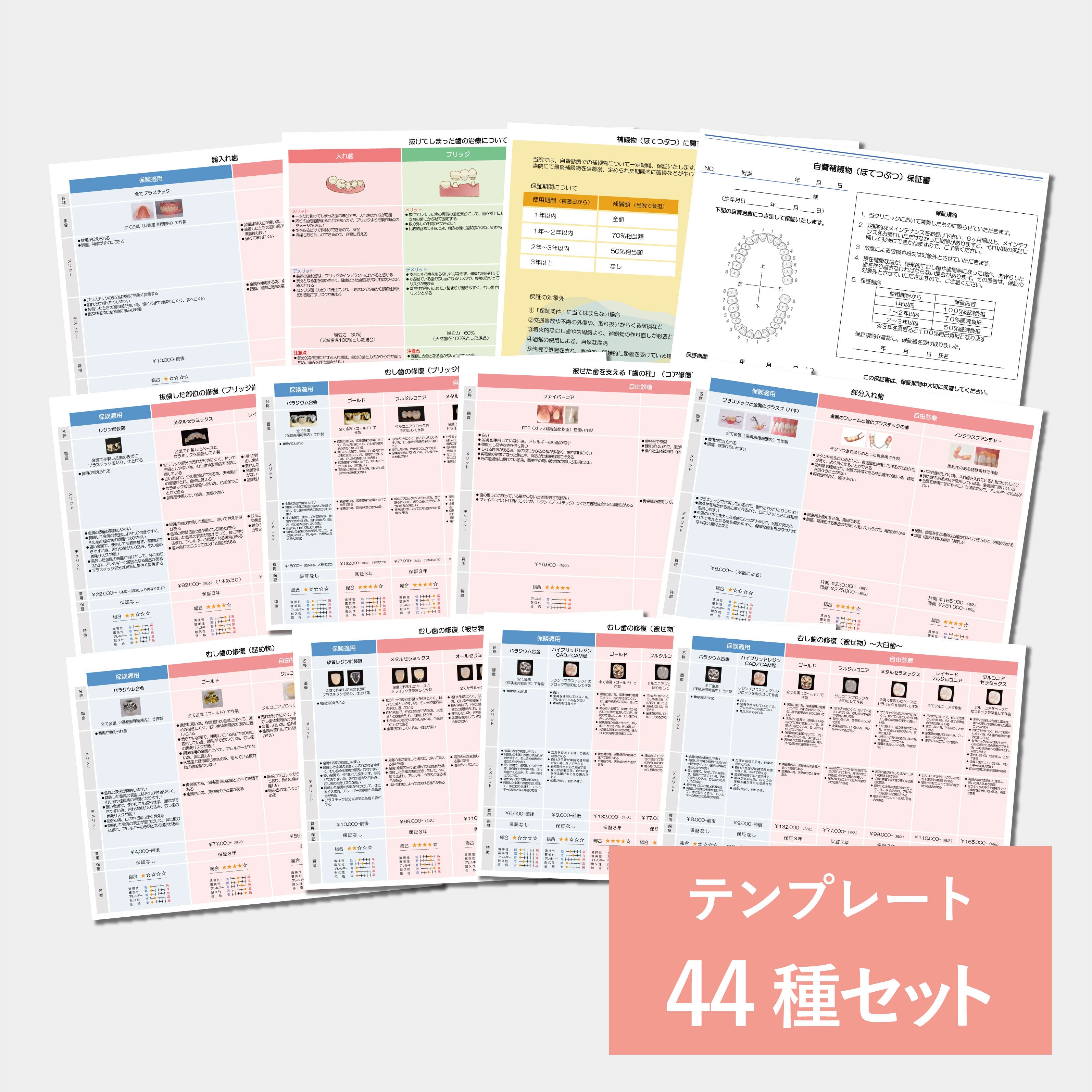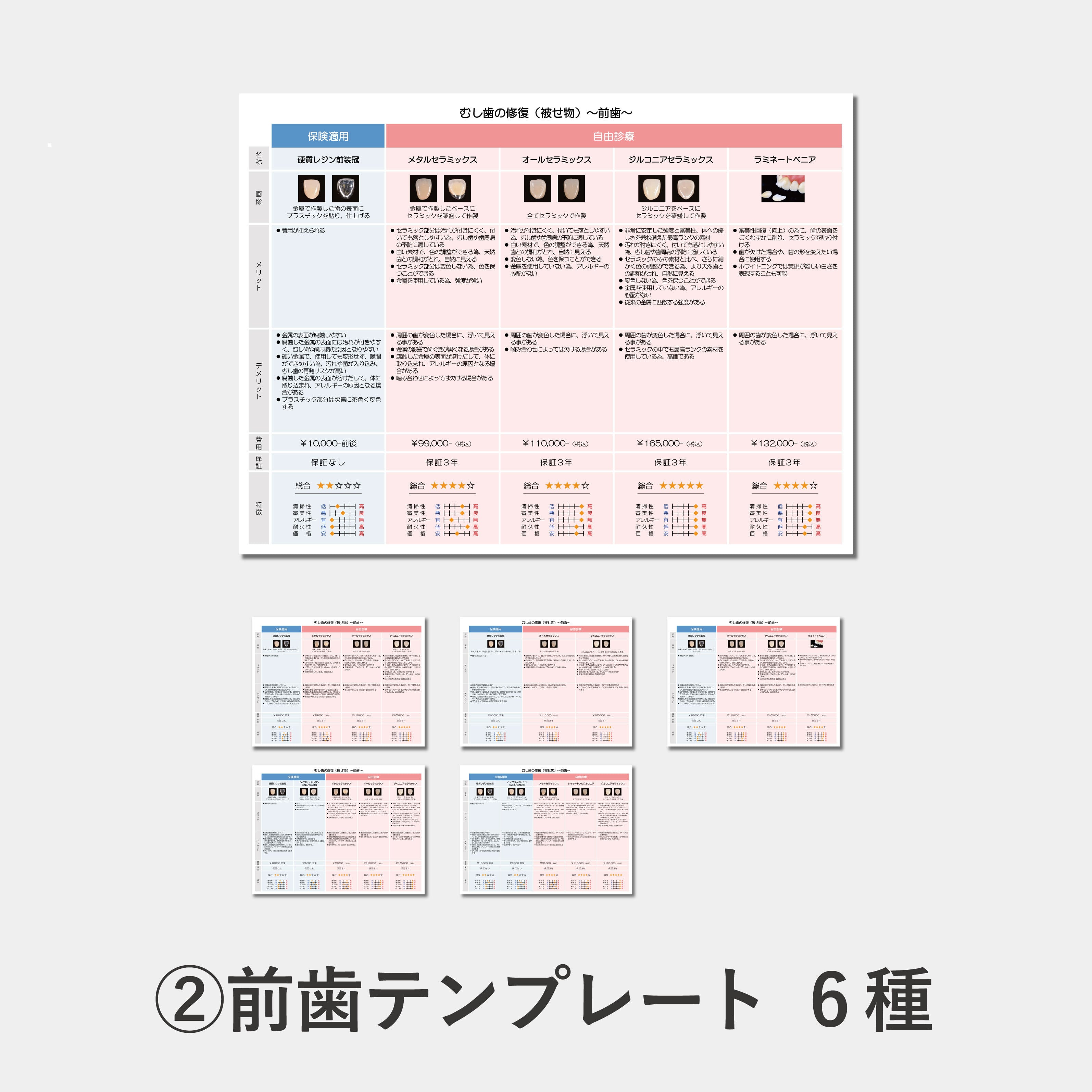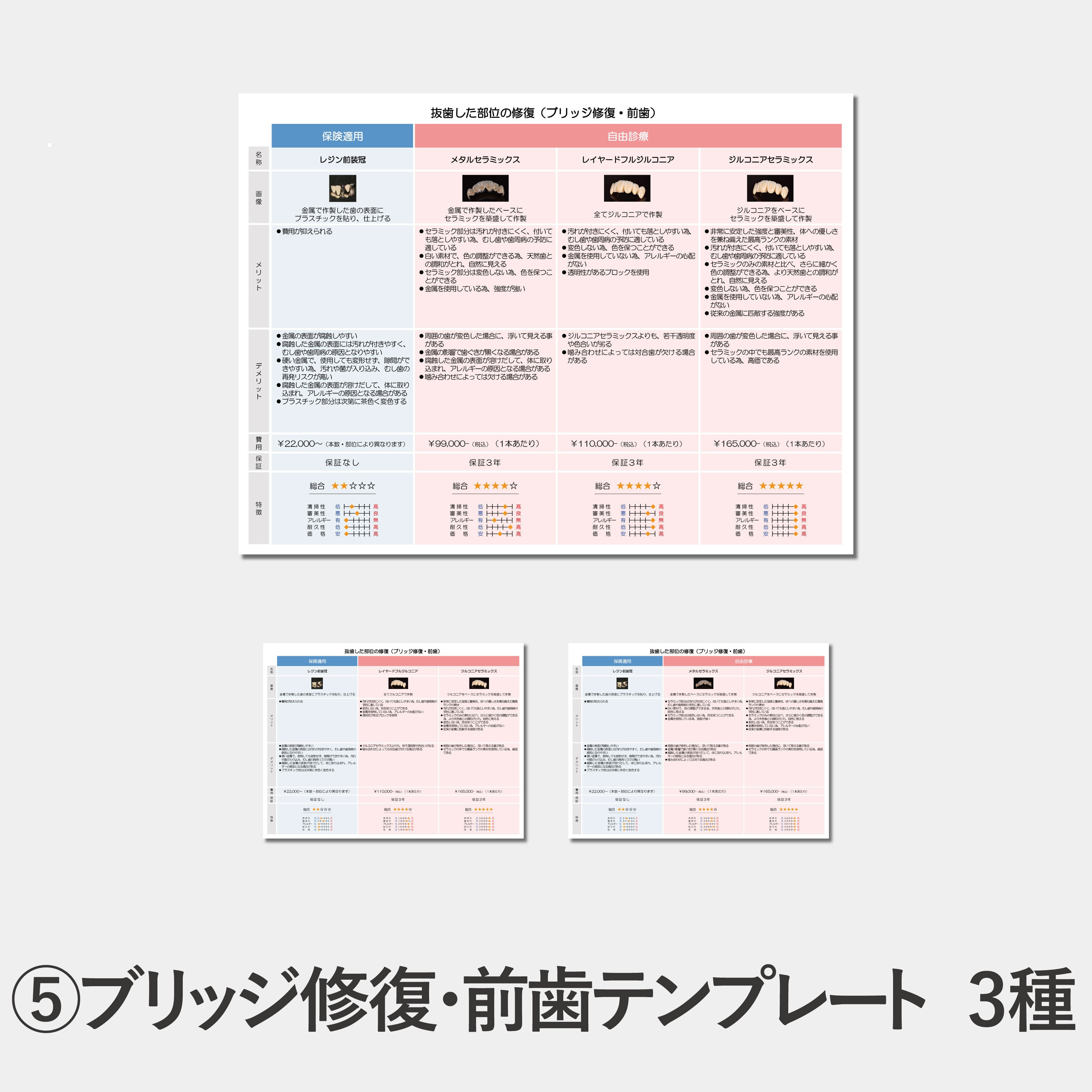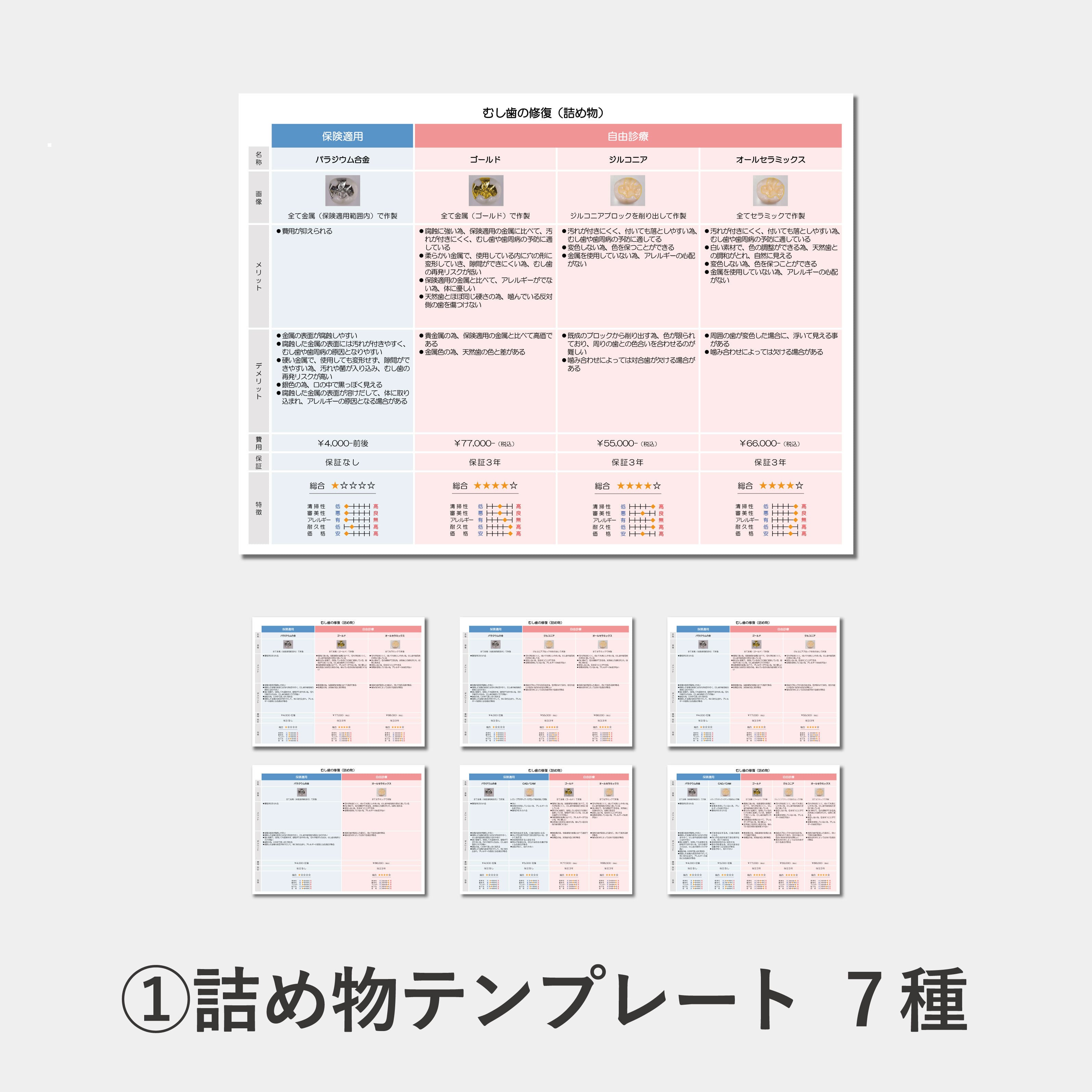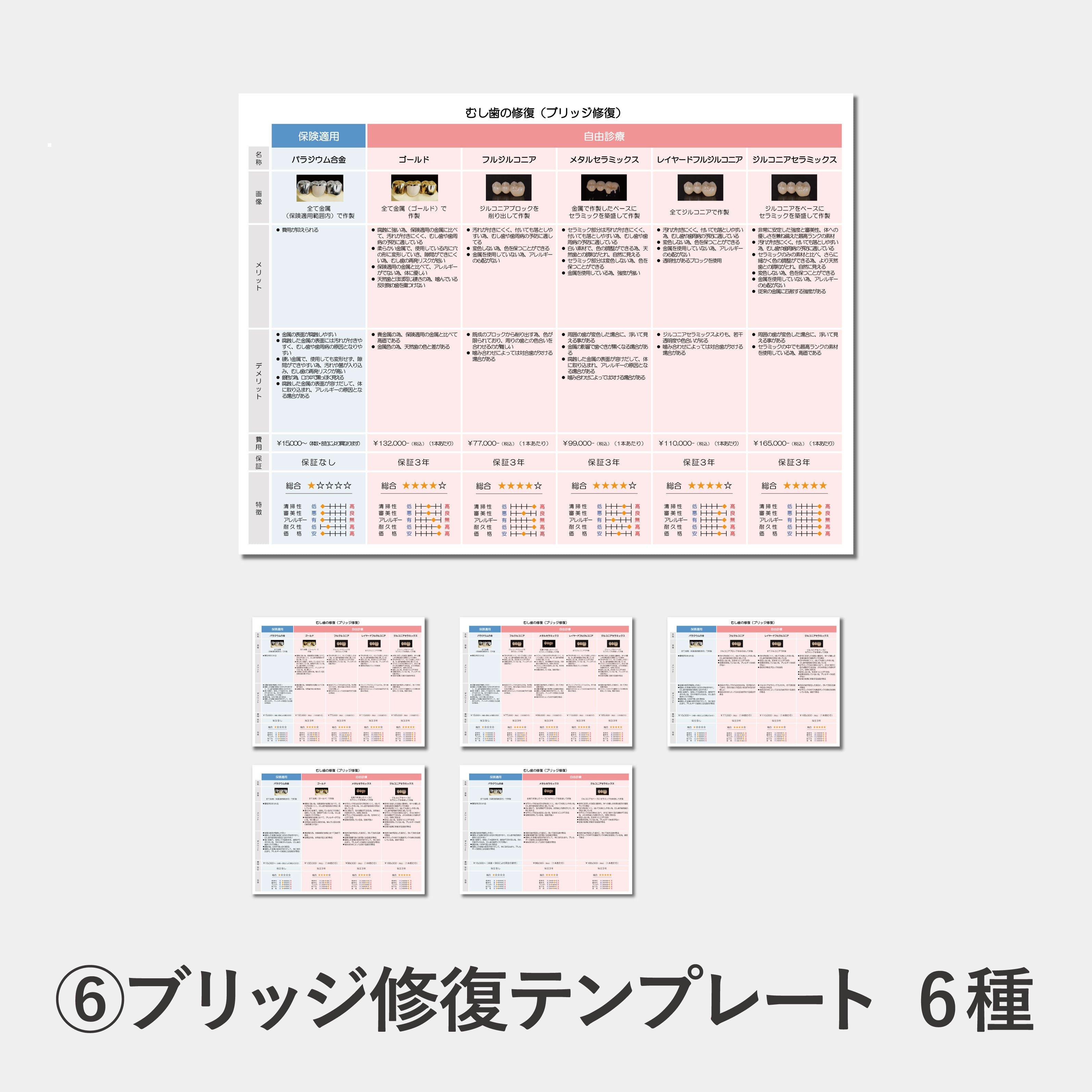 患者説明にそのまま使える、補綴メニュー表のテンプレートセット(PowerPoint)です。