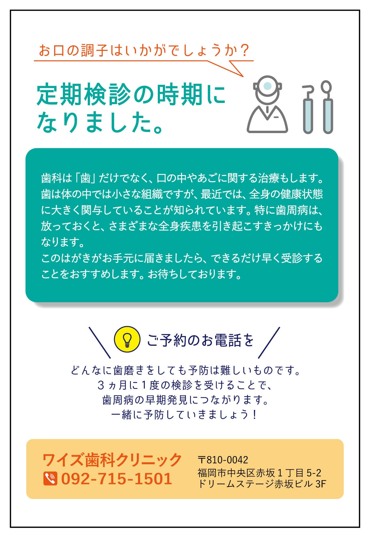 まだ予約が入っていない患者様へ定期検診の時期をお知らせするものです。