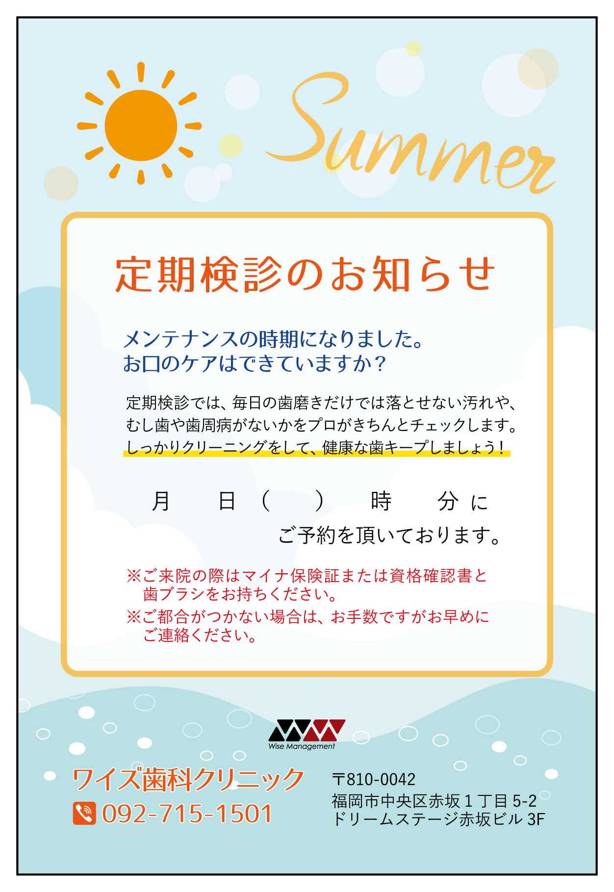 すでに次回の定期検診のご予約が入っている患者様へ日時をお知らせするものです。