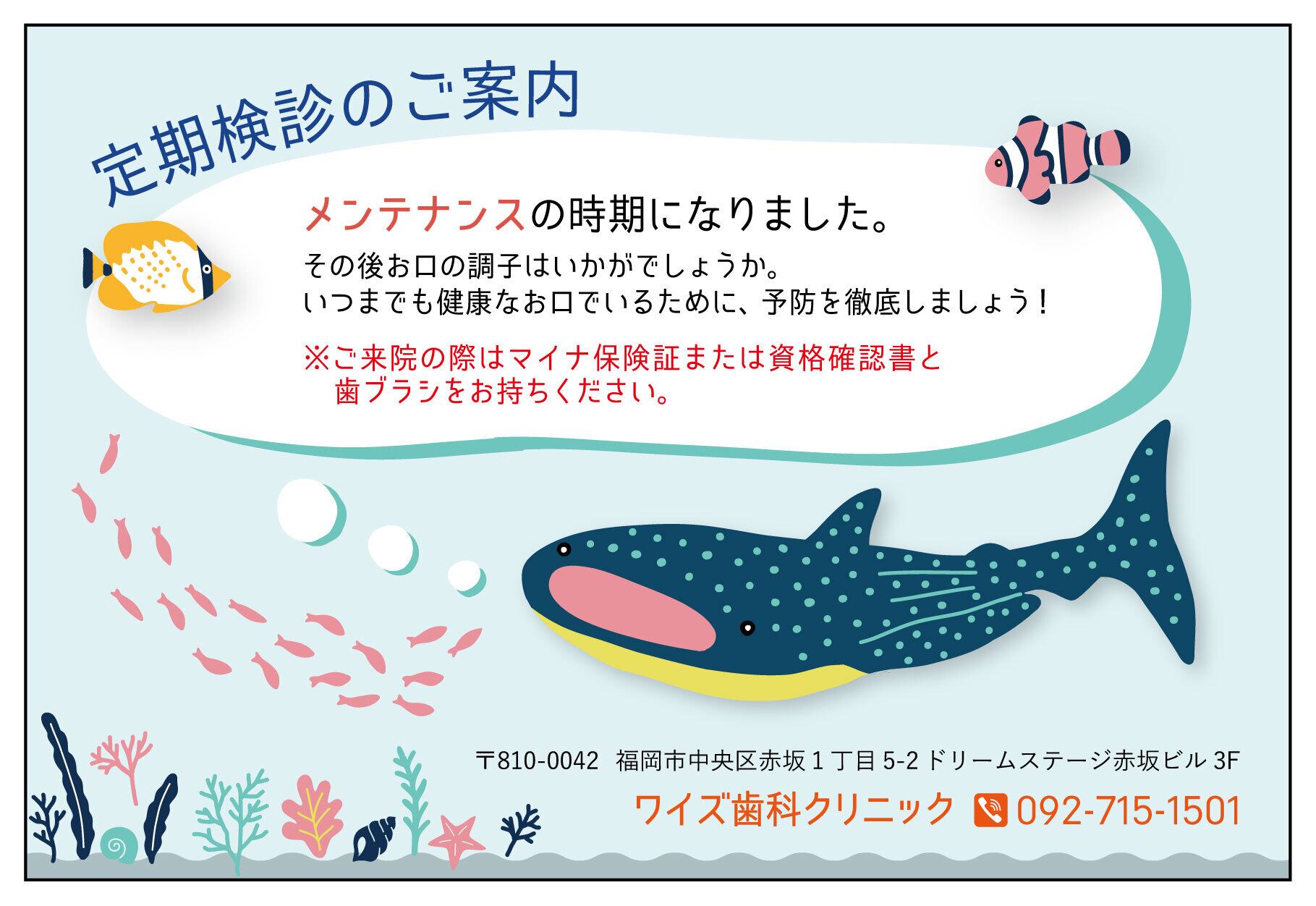 定期検診のご案内のハガキです。