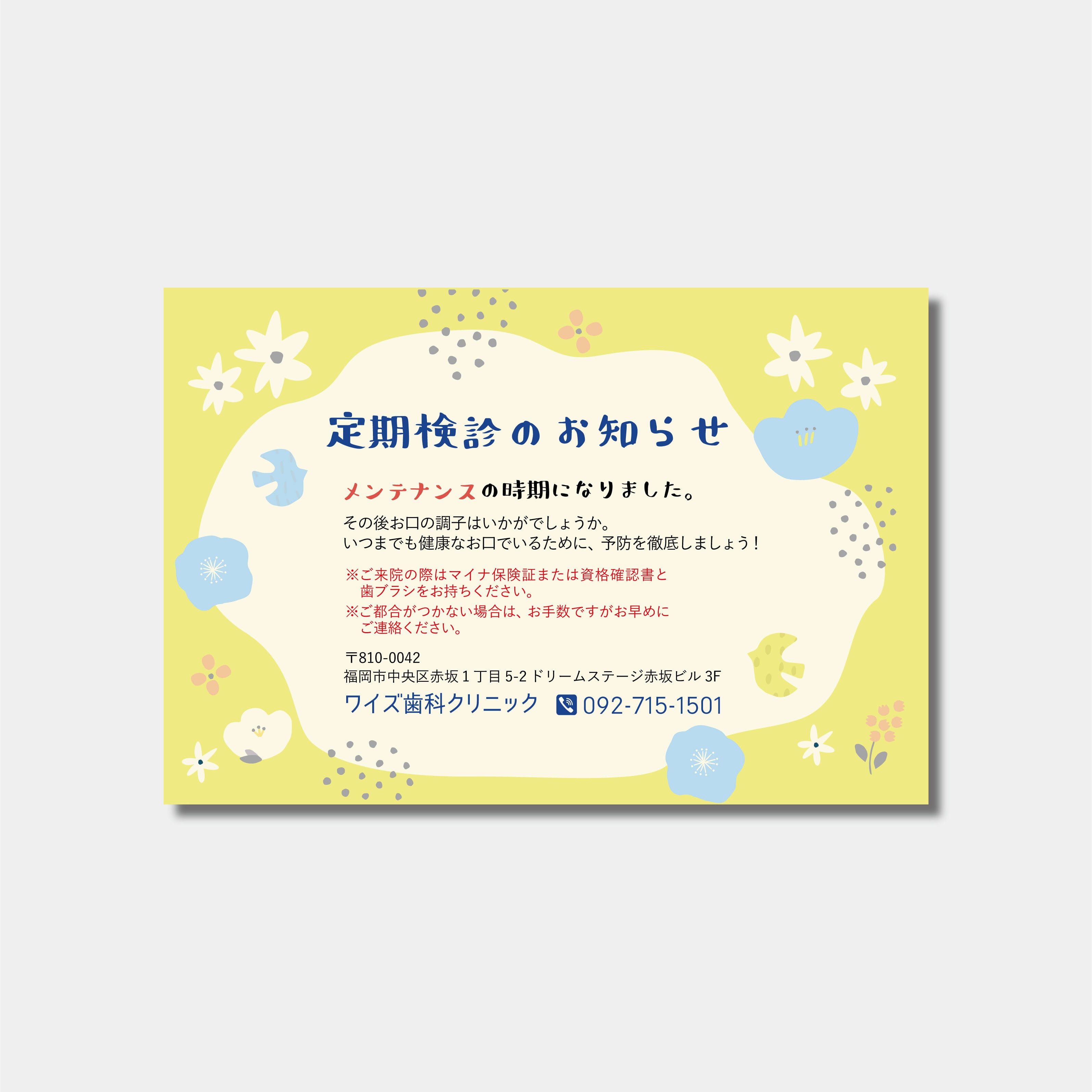 定期検診のご案内のハガキです。
