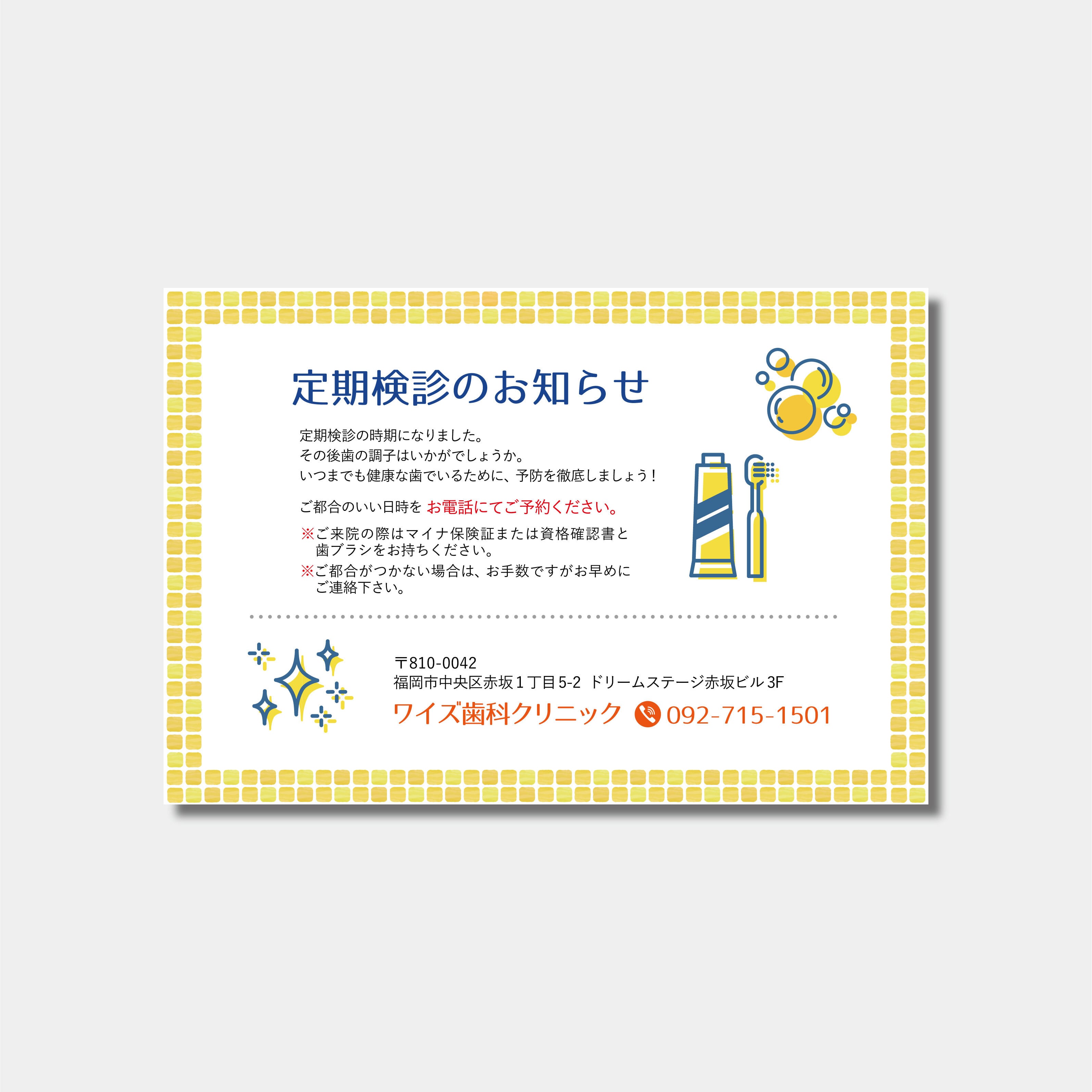 定期検診のご案内のハガキです。