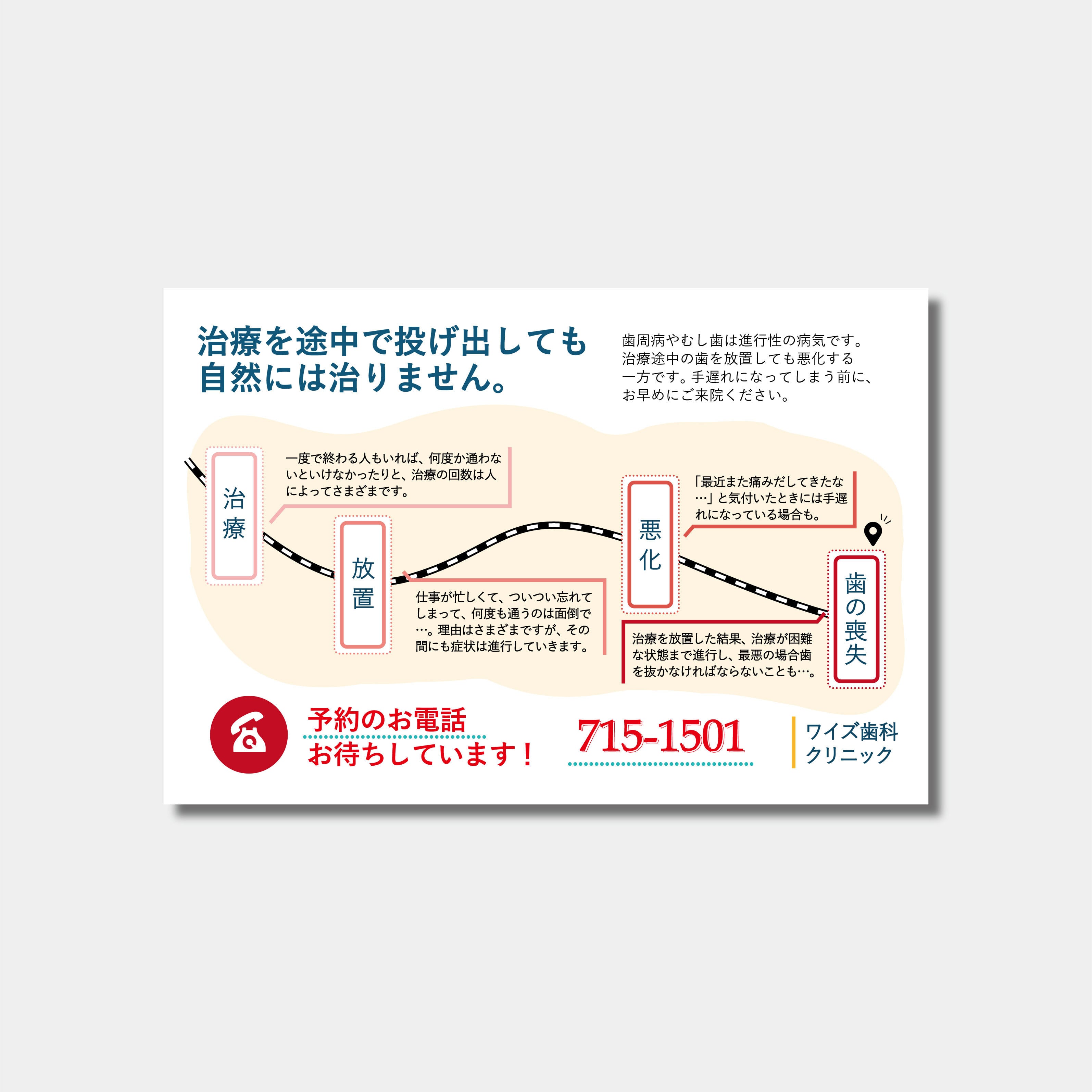 治療を中断してしまい、悪いところをそのままにしている患者様へ受診を促すものです。