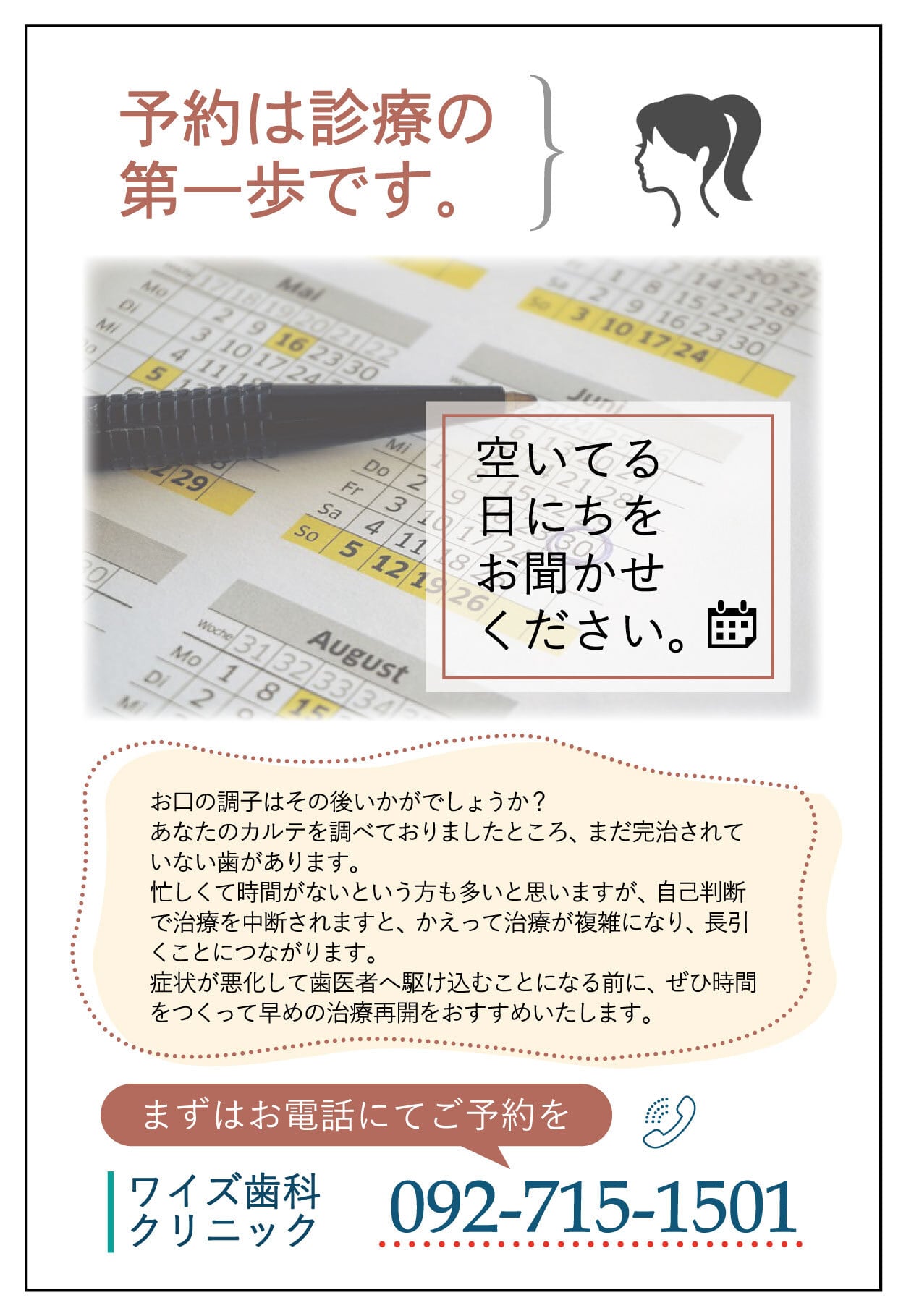 治療を中断してしまい、悪いところをそのままにしている患者様へ受診を促すものです。