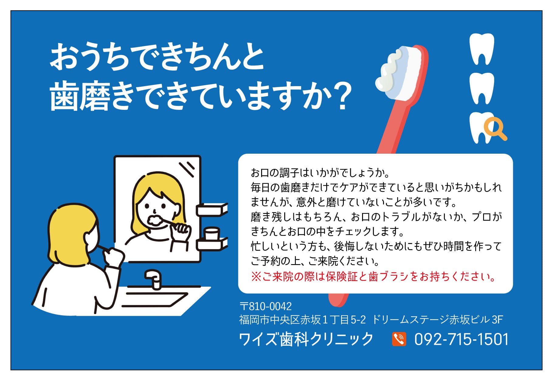 ご自宅での歯磨きだけでは十分にケアできない旨をお伝えしています。また正しい歯磨きができているか、磨き残しはないか、後悔しないためにも歯医者に行くことを促す内容にもなっています。