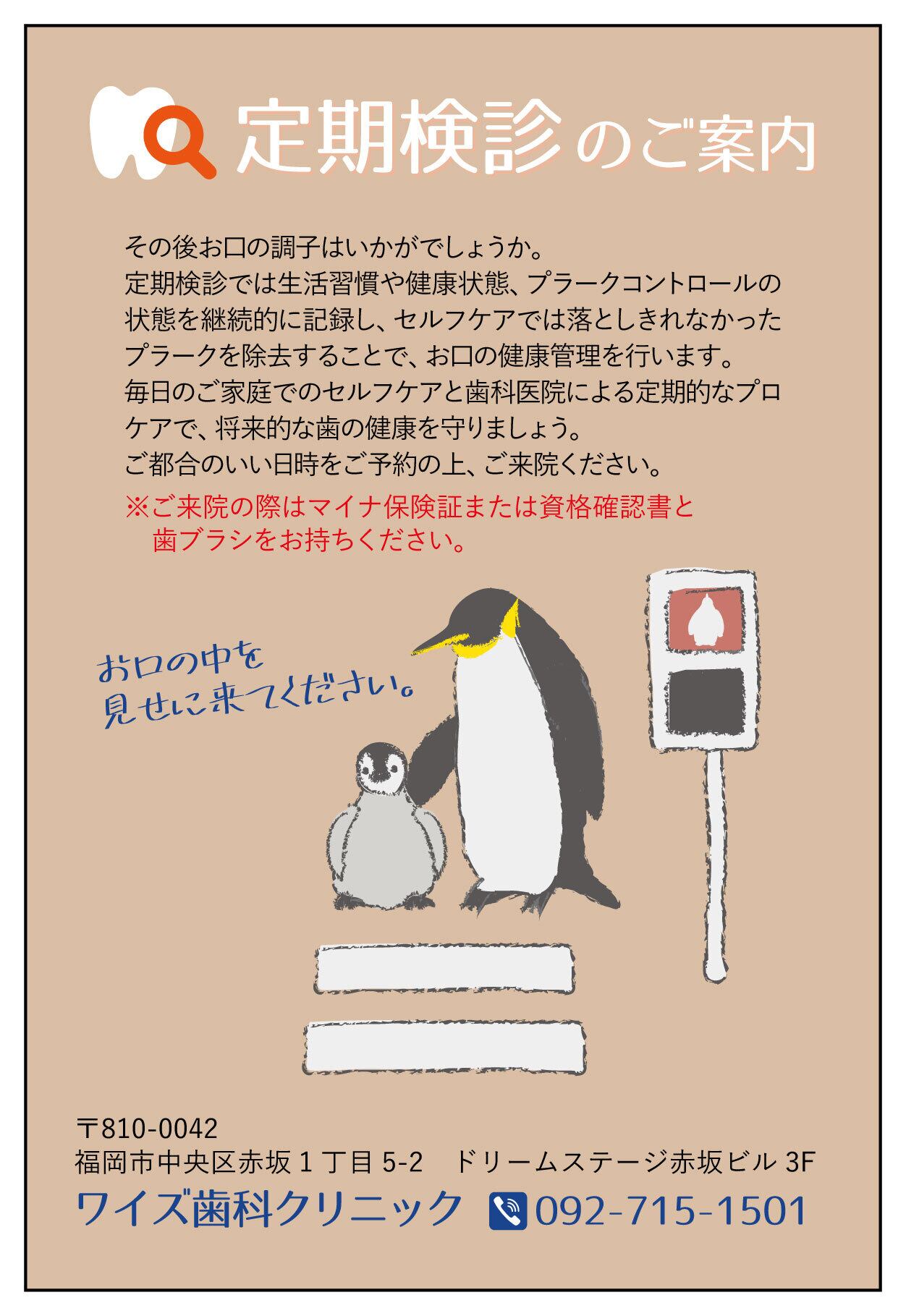 定期検診のご案内のハガキです。
