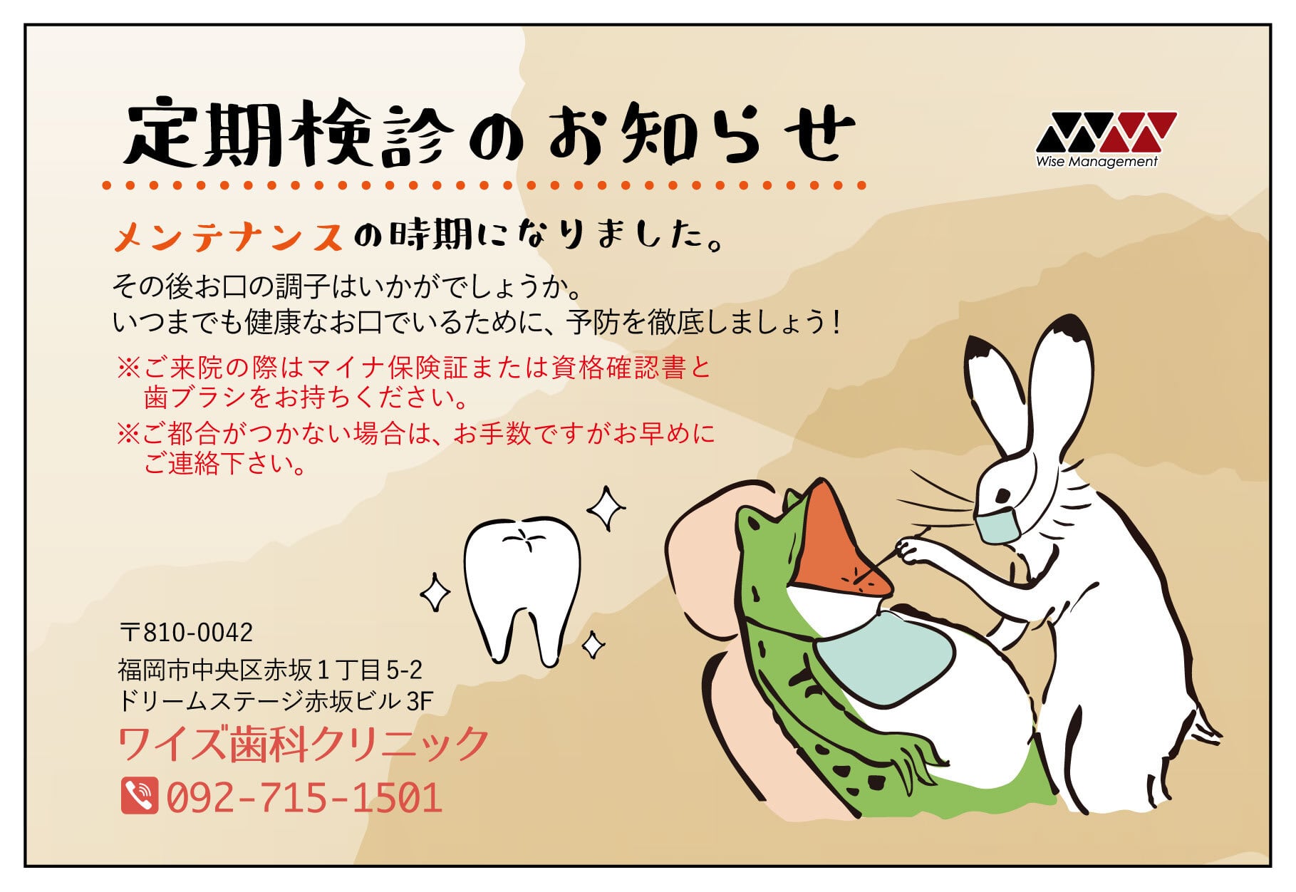 まだ予約が入っていない患者様へ定期検診の時期をお知らせするものです。