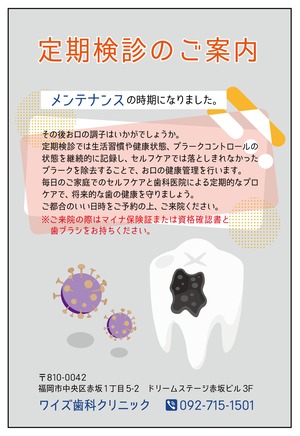 まだ予約が入っていない患者様へ定期検診の時期をお知らせするものです。