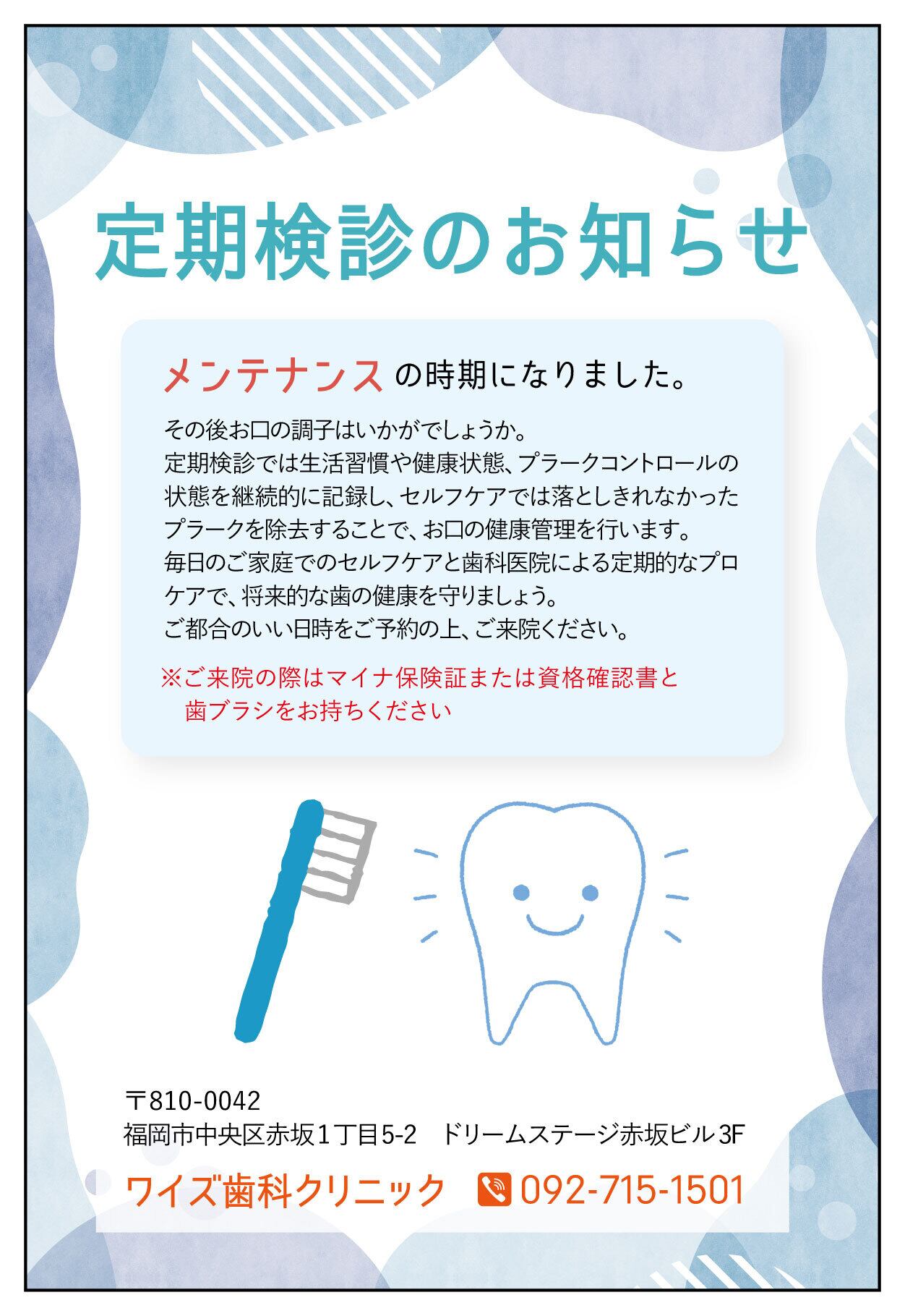 まだ予約が入っていない患者様へ定期検診の時期をお知らせするものです。