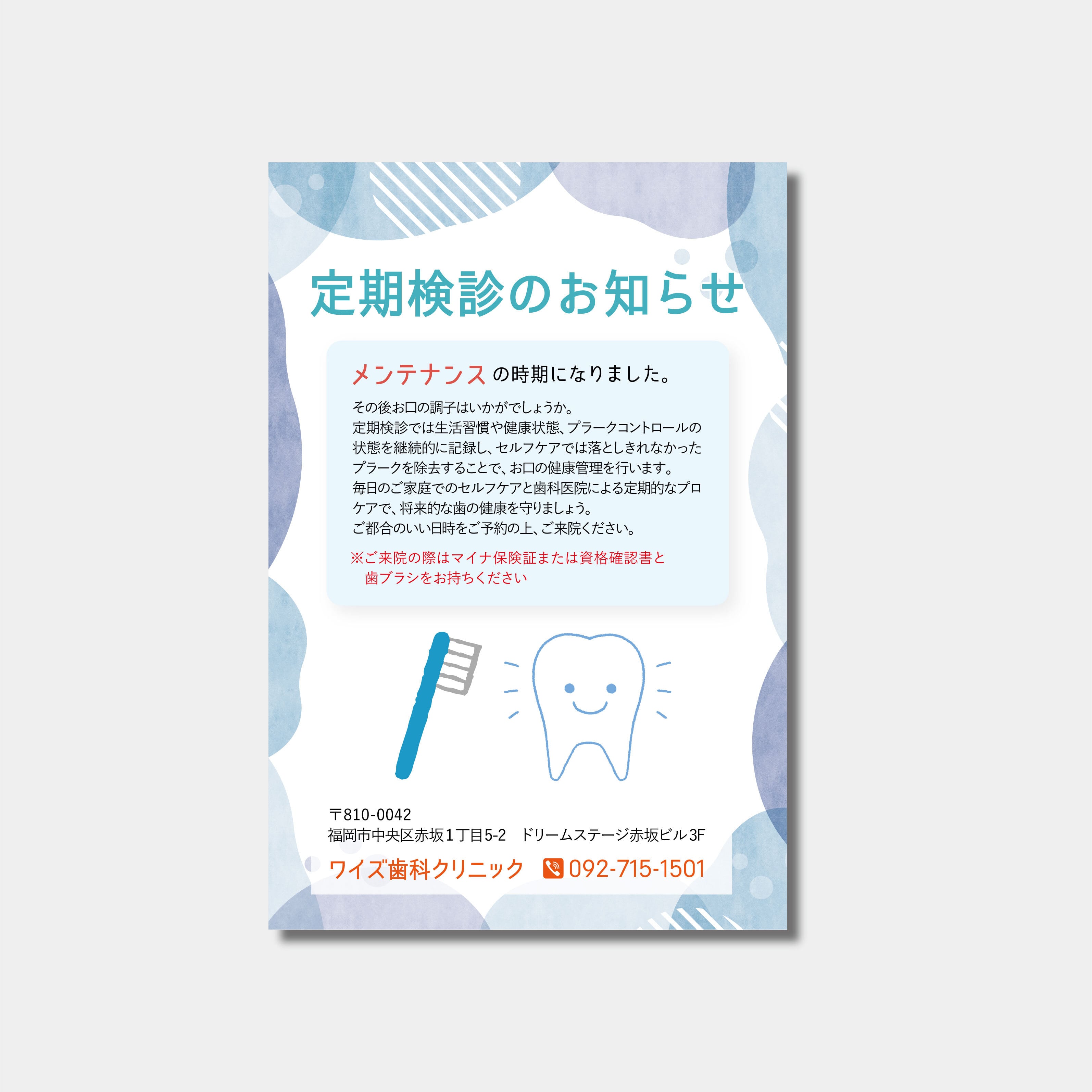定期検診のご案内のハガキです。