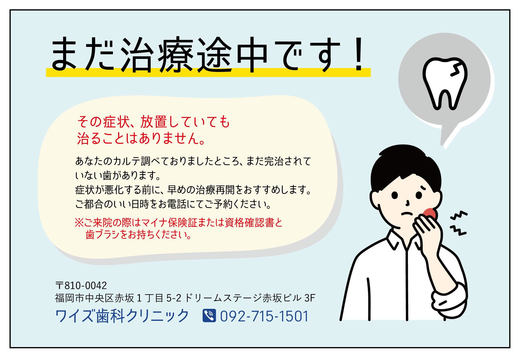 治療を中断してしまい、悪いところをそのままにしている患者様へ受診を促すものです。