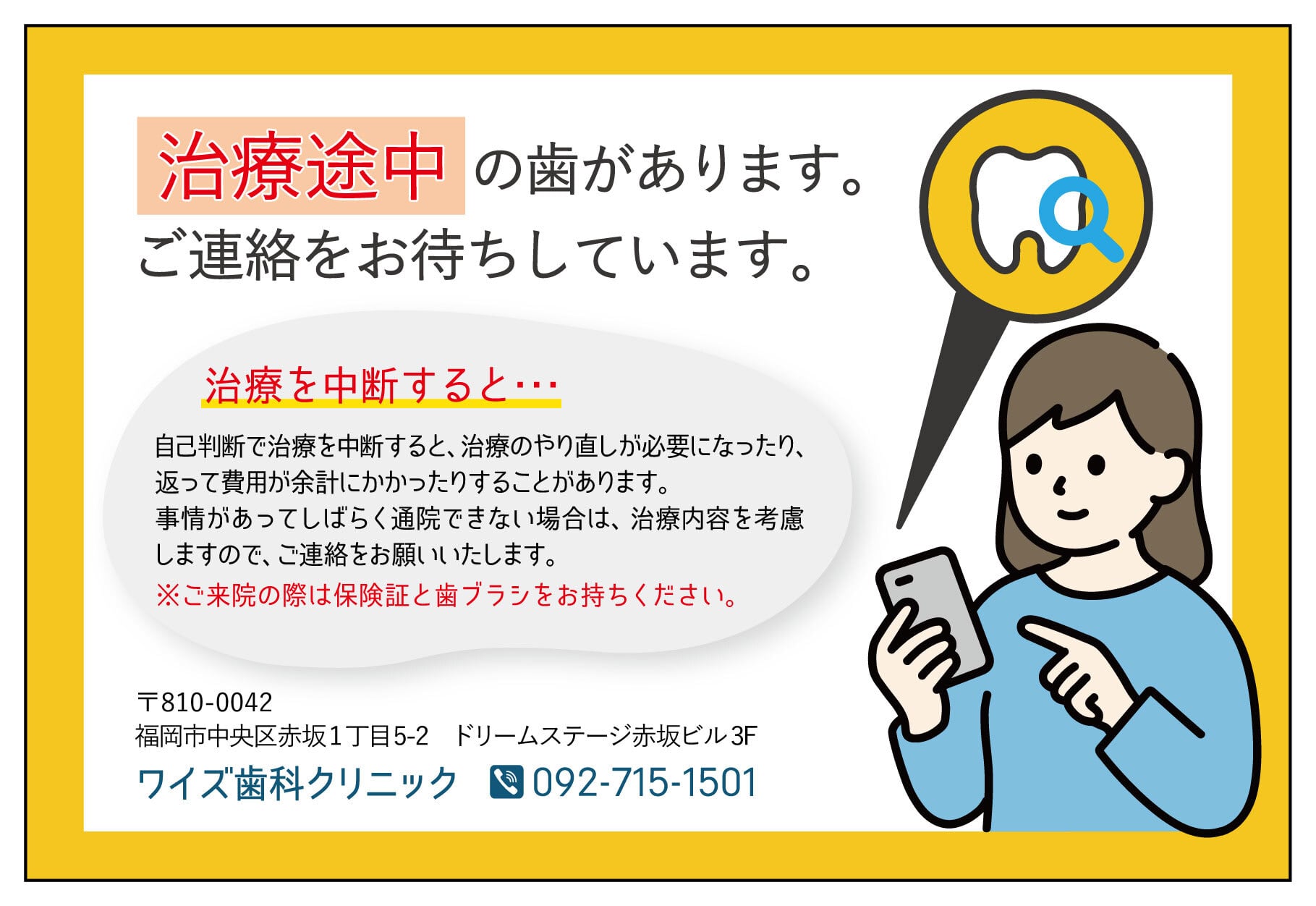 治療を中断してしまい、悪いところをそのままにしている患者様へ受診を促すものです。