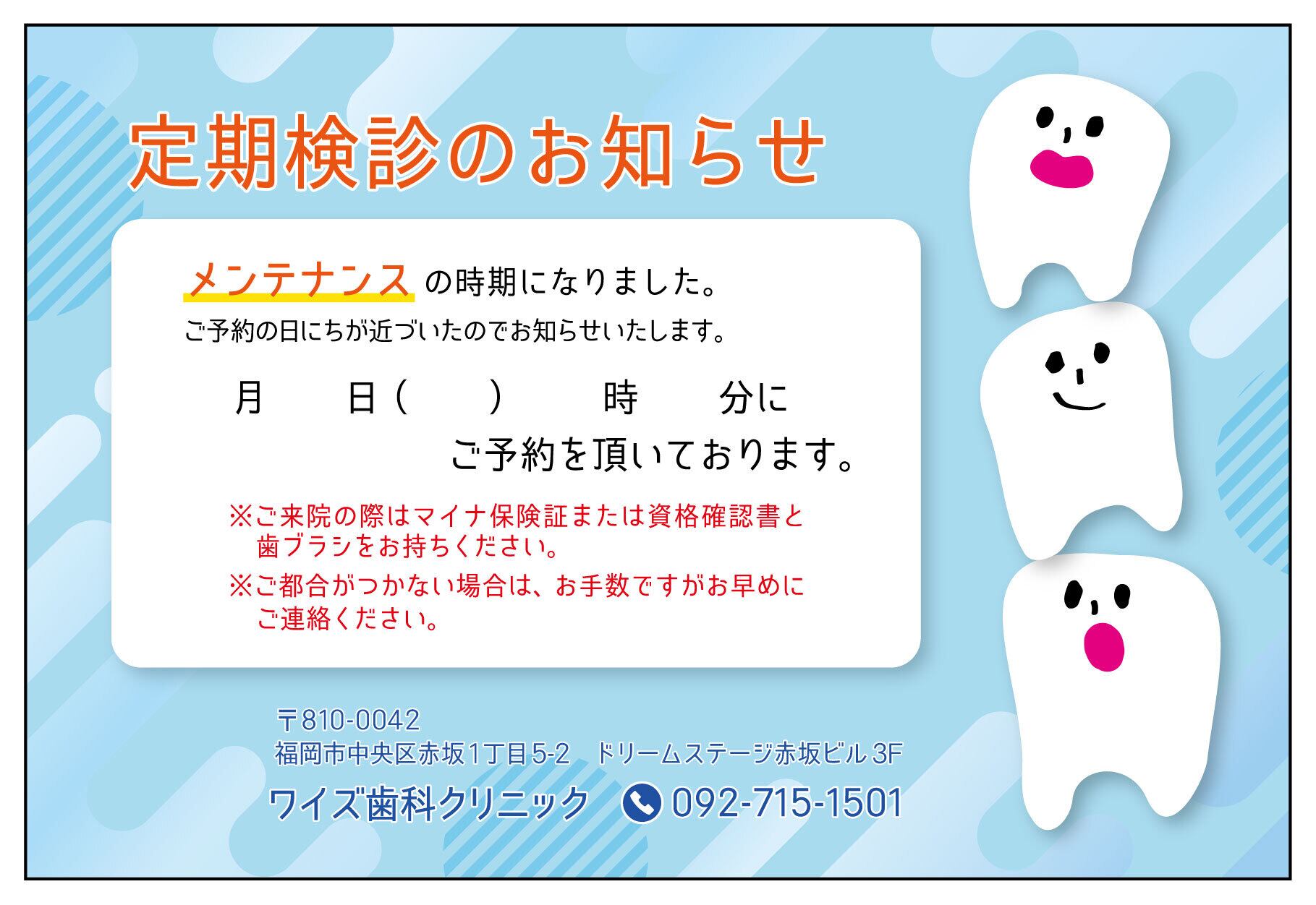 すでに次回の定期検診のご予約が入っている患者様へ日時をお知らせするものです。