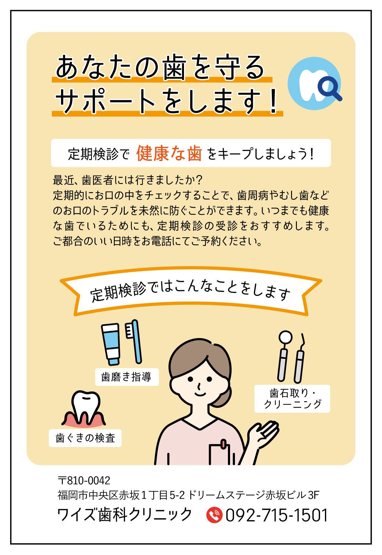 定期検診で行う主な内容を載せ、患者様がイメージしやすいような内容になっています。