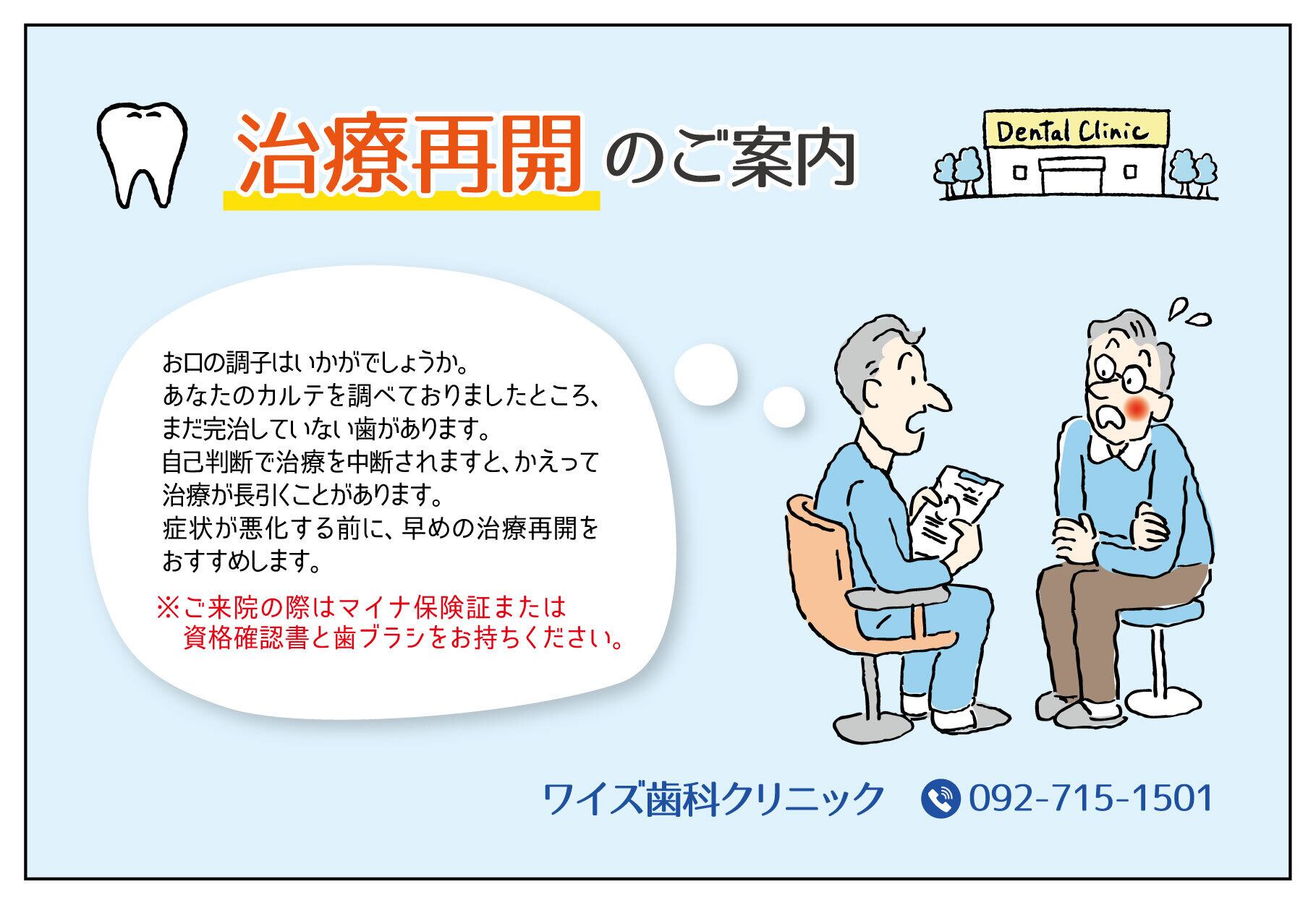 治療を中断してしまい、悪いところをそのままにしている患者様へ受診を促すものです。