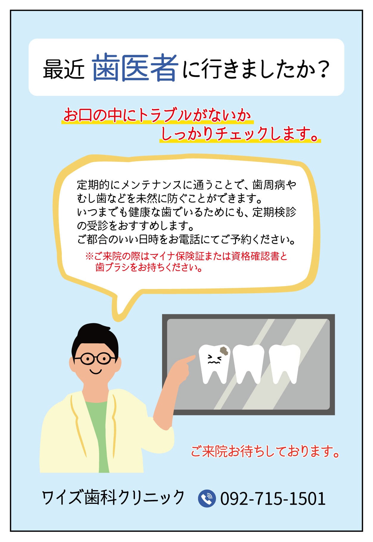 治療や定期検診に長い間通っていない患者様へ受診を促すものです。
