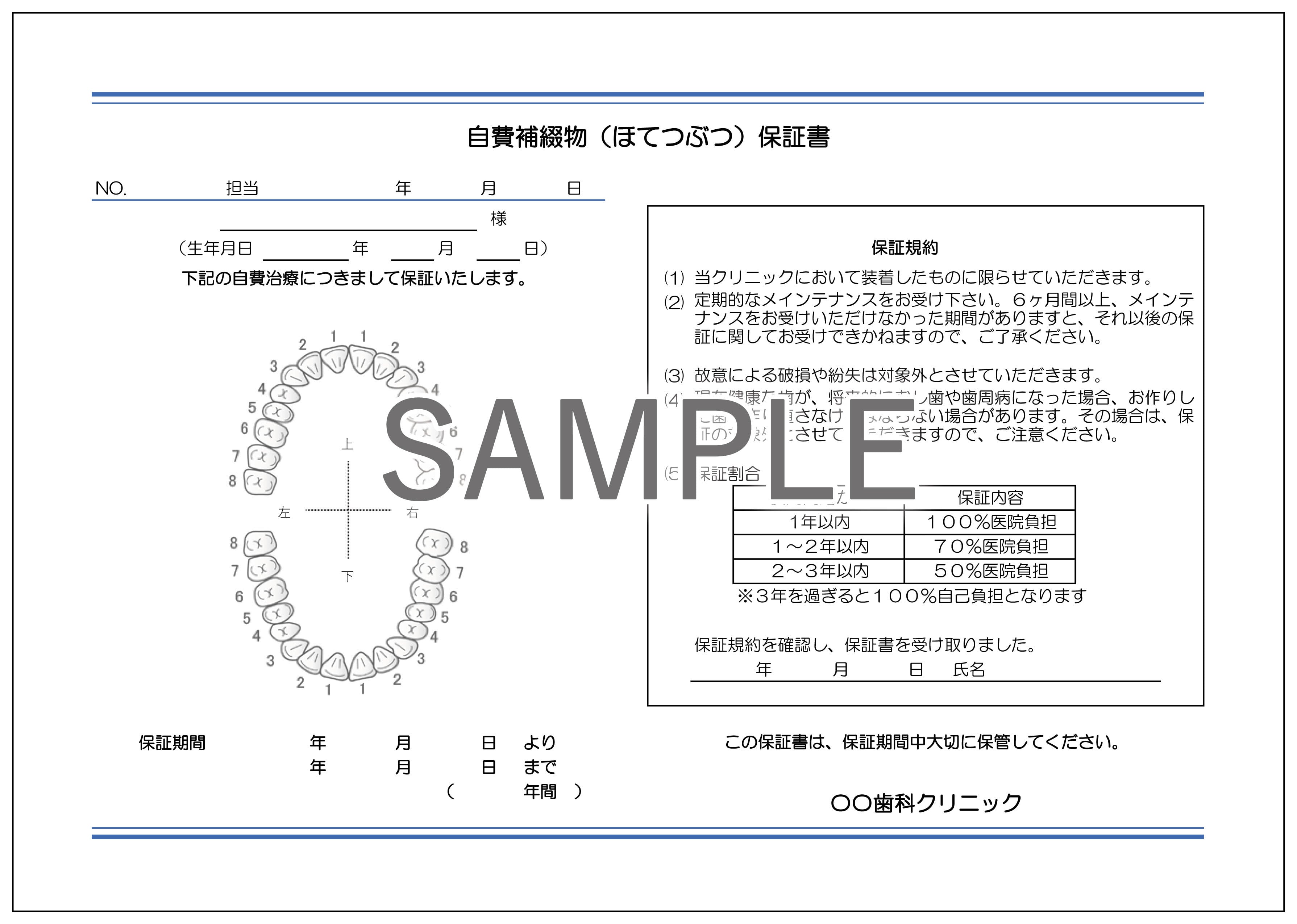 ・自費補綴物保証書